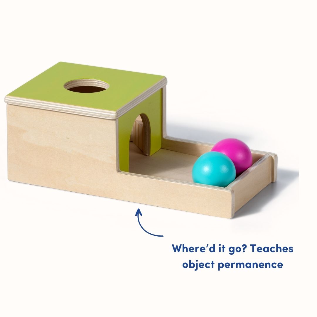 يعلّم مفهوم بقاء الكائنات بينما يشاهد طفلك الكرة تختفي وتظهر من جديد.