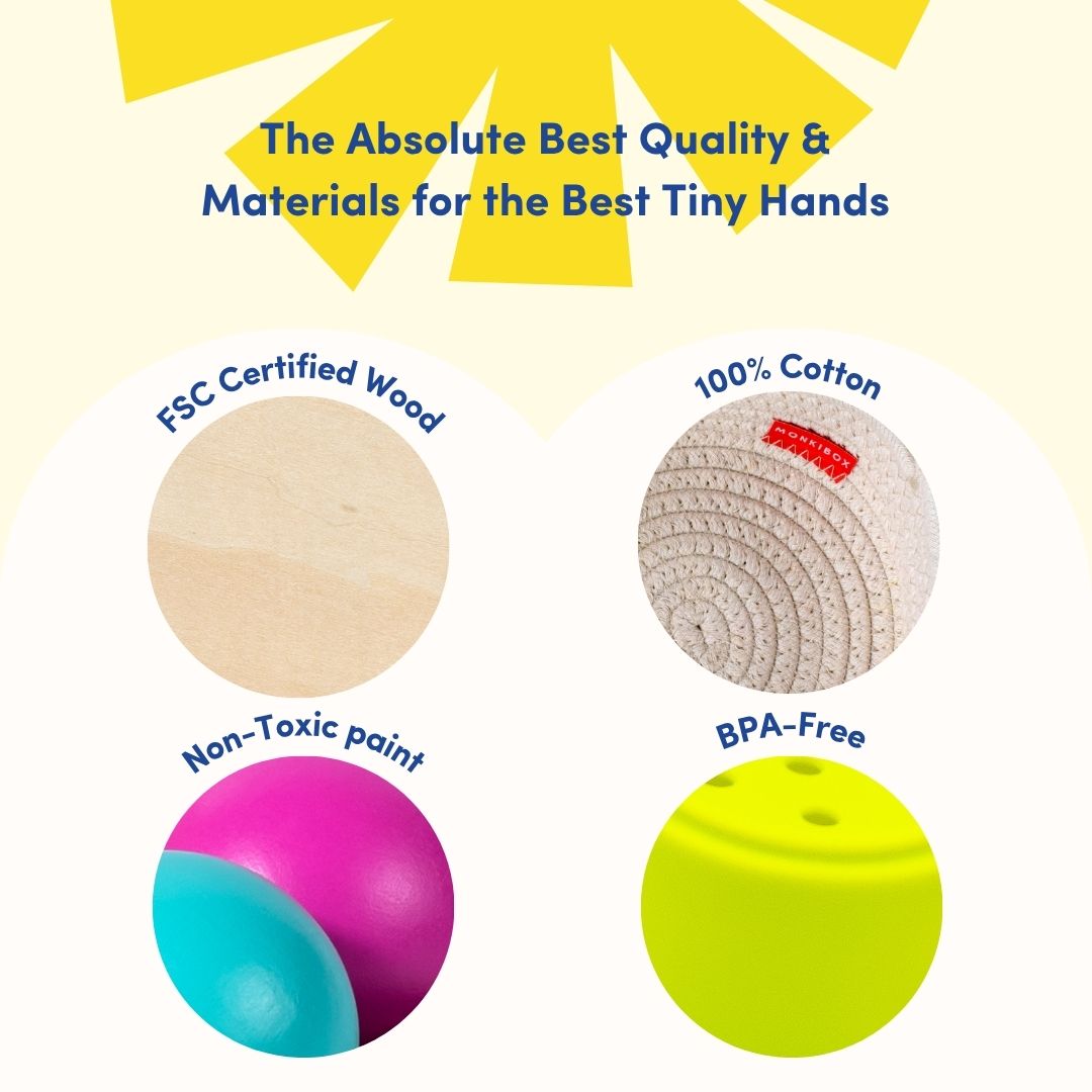 The quality is amazing, and I love how each toy supports a specific developmental skill — motor coordination, problem-solving, focus, and early language. It’s not just play; it’s purposeful play that keeps her engaged and learning.