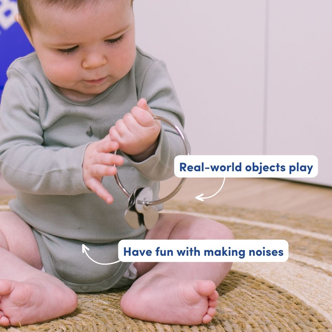 يحفّز حاسة السمع والمهارات الحركية الدقيقة باستخدام الفولاذ المقاوم للصدأ (ستينلس) الآمن والمتين، مما يشجع على استكشاف الأشياء من الحياة الواقعية.