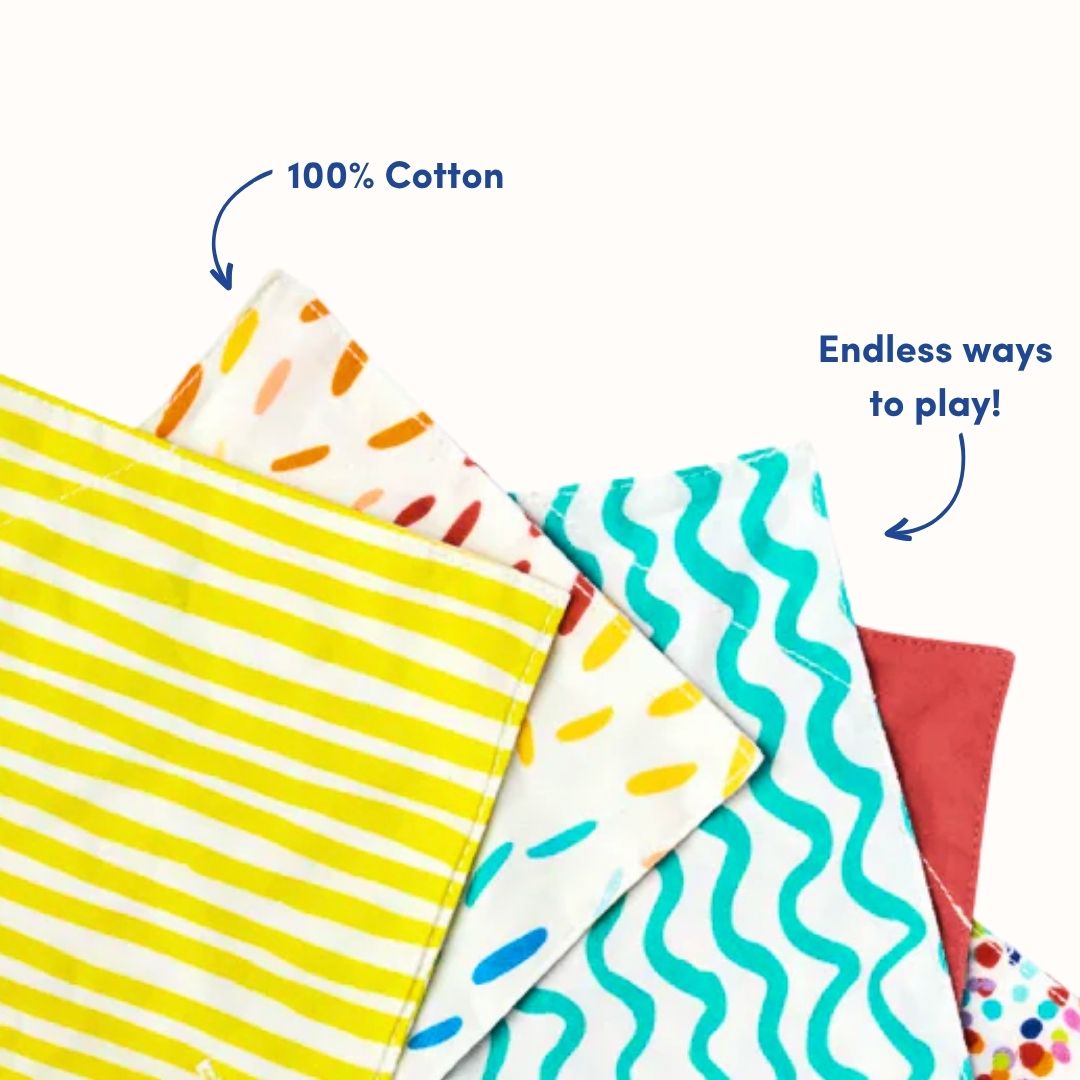 مثالي للعب الحسي مع ألوان وأشكال وأنماط مختلفة؛ ناعم، مصنوع من القطن ١٠٠٪.