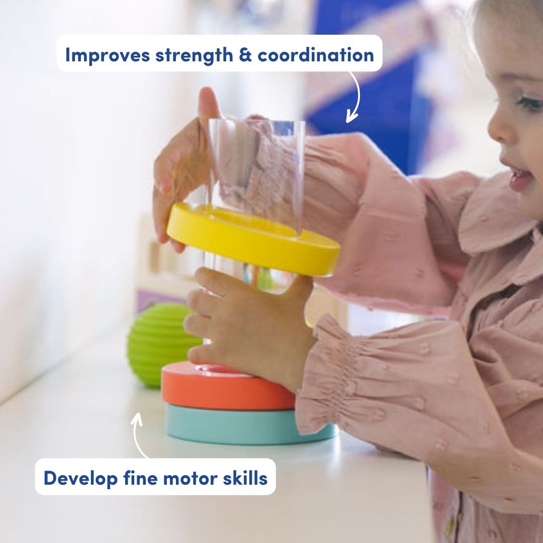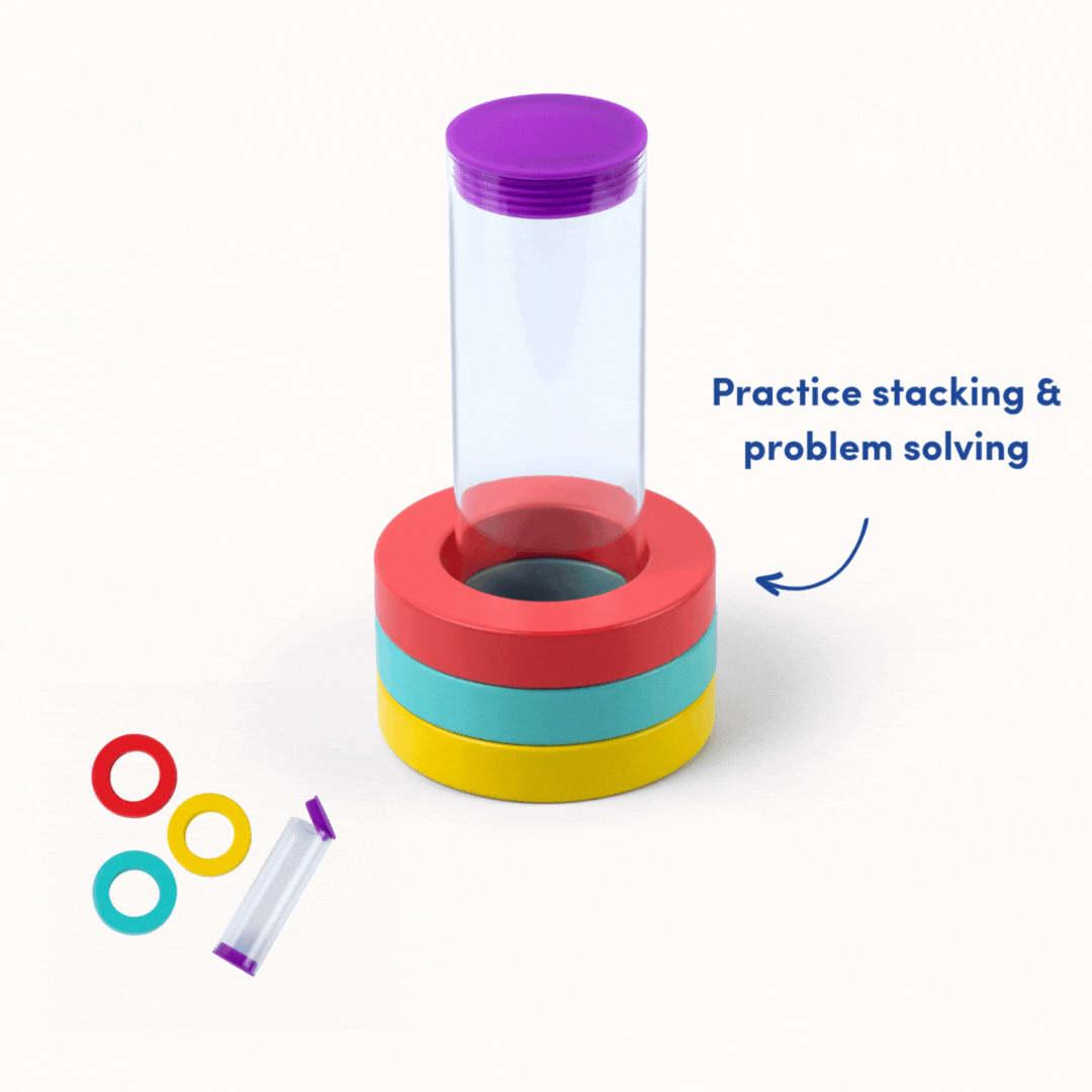 مصممة لتعليم التكديس، والاحتواء، وحل المشكلات؛ مناسبة مع الأنبوب الحسي.