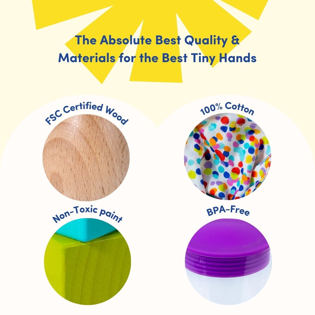 The quality is amazing, and I love how each toy supports a specific developmental skill — motor coordination, problem-solving, focus, and early language. It’s not just play; it’s purposeful play that keeps her engaged and learning.