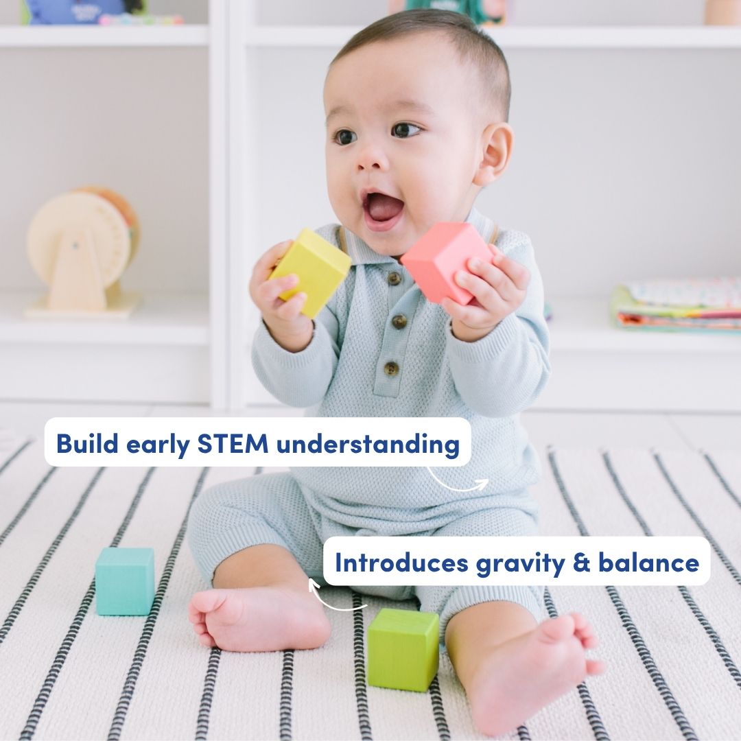 تساعد في بناء المفردات، وتعلم التكديس، وتقدم مفاهيم الهندسة والتوازن.