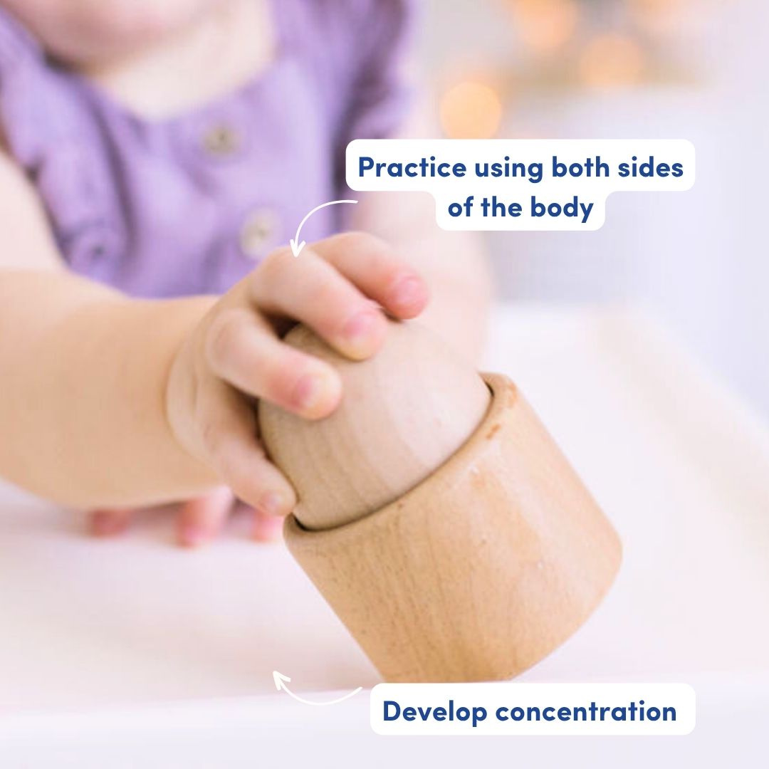 يشجع على التركيز والتنسيق بين اليد والعين والمهارات الحركية الدقيقة بينما يتدرب طفلك على وضع البيضة في الكوب وتوازنها.